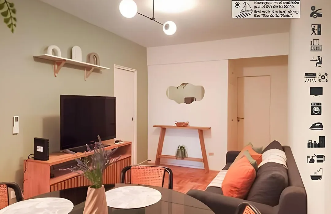 The apartment has a balcony, a dressing area, and a fully equipped kitchen, and comforts such as climate control and a washing machine. Boho Palermo - Frente Al Ecoparque C/Balcon Apartment offers guests the convenient feature of a hair dryer, free toiletries, and bath sheets in the bathroom.